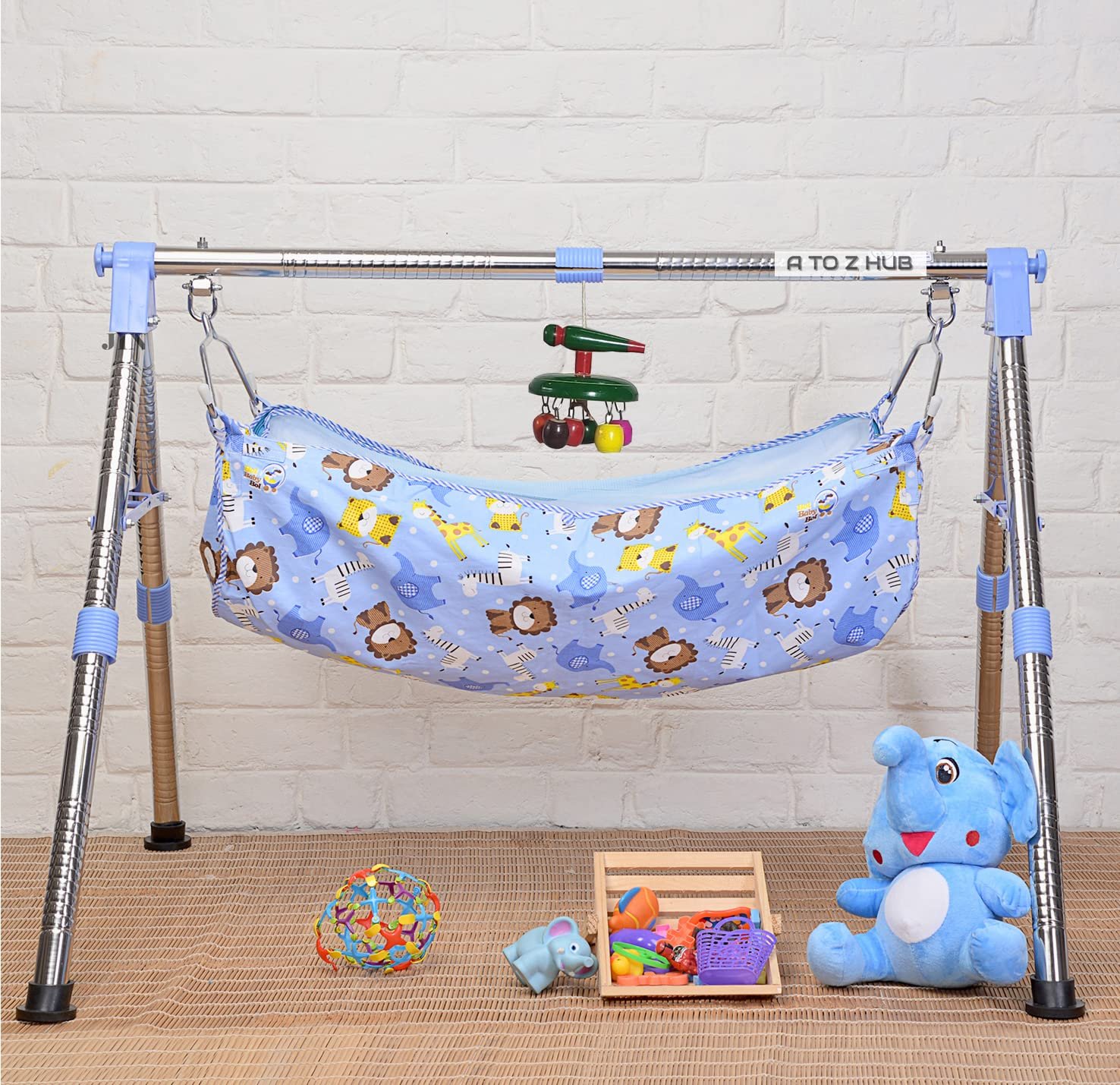 A to Z Hub Baby Boy’S And Girl’S Portable Folding Swing Cradle/Ghodiyu/Parna/Jhula, With Free Baby Cotton Hammock. (Super Folding Nri (Blue)), (30 X 8 X 4Cm)
