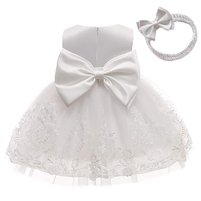 CMMCHAAH 0-6T Baby Girls Pageant Lace Embroidery Dresses Toddler Party Bowknot Tutu Gown Dress with Headwear
