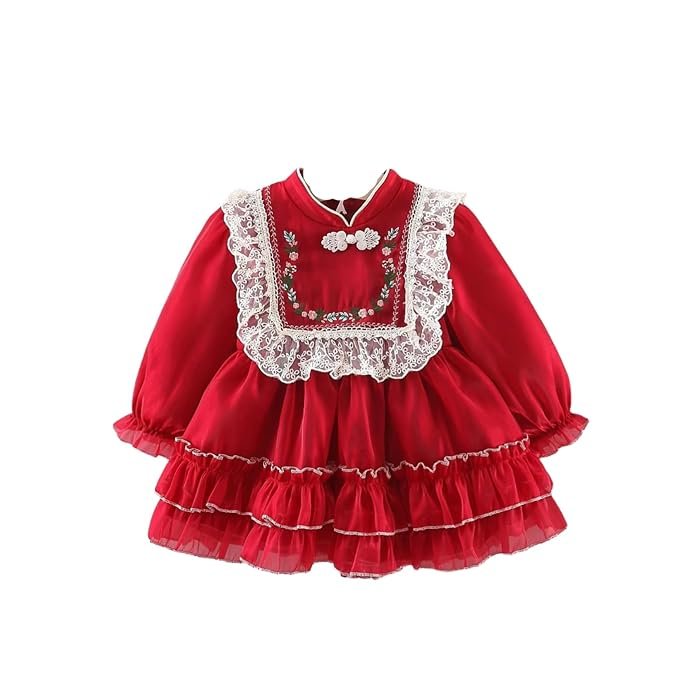 Cuddles & Chaos – Floral Embroidery Full Sleeves Ruffle Frocks for Baby Girls | Dresses for Baby Girls |Flarred Frocks for Baby Girls