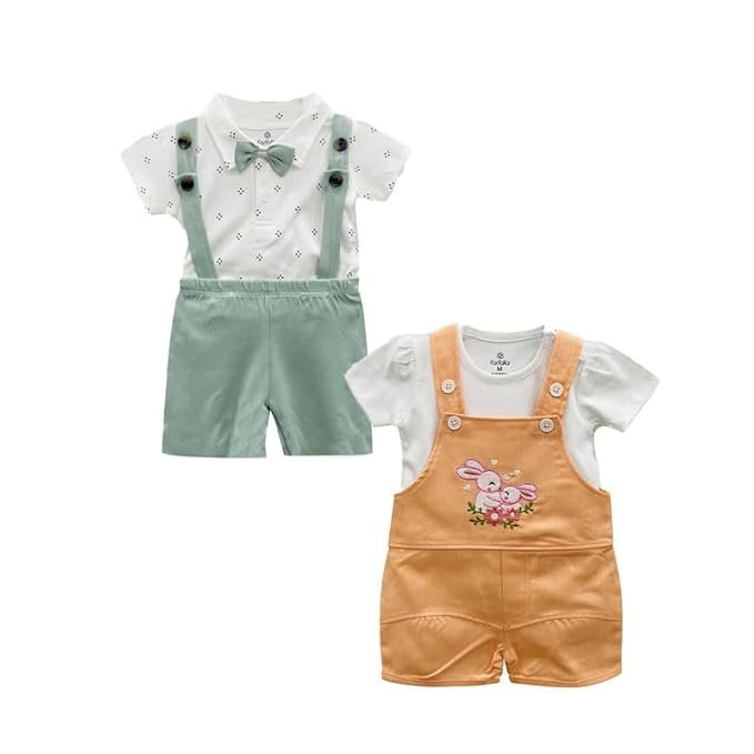 Farfalla Newborn Baby Dress Set | 100% Cotton Super Soft Unisex Half Sleeve Checkered Top and Bottom | T-Shirt and Shorts Clothing Set | Casual Dress for Babies | Kids Dress Set