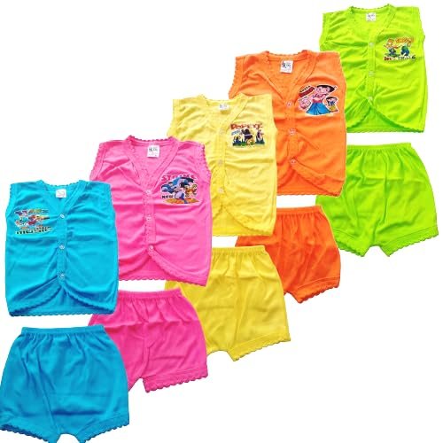 Fassify® New Born Baby Boy & Girls Stylish Trendy Top/TShirt/Jablas and Shorts Dress set with Front Button Open. Pack of 5 T-shirt + 5 Shorts I Size 0 Months up to 1 years(Multicolor)