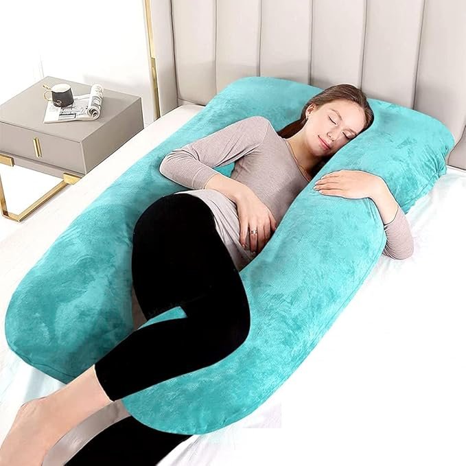 Furrlovers Pregnancy Pillow Plush Fabric for Women for Back, HIPS, Legs, Belly Support During Sleeping, Full Body Maternity Pillow Washable & Removable Velvet Cover. (Aqua, U-Shaped)