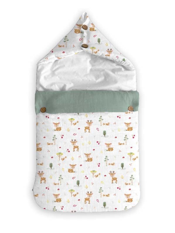 haus & kinder 3 in 1 Baby Sleeping Bag & Carry Nest | Cotton Bedding Set for Infants & New Born Baby | Portable/Travel & Skin Friendly | 0-6 Months (Whimiscal Woodland)