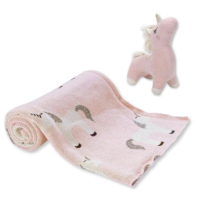haus & kinder Hugsy Alpaca 100% Pure Cotton Knitted Summer/AC Blanket for Baby with Toy (Fluffy Pony)