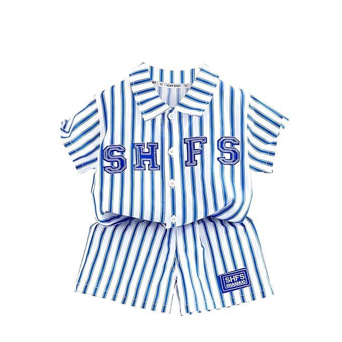 HONE BABY Co-ord Cotton Shirt and Pant Shorts Clothing Set for Boys – Stripes Design in Blue Color