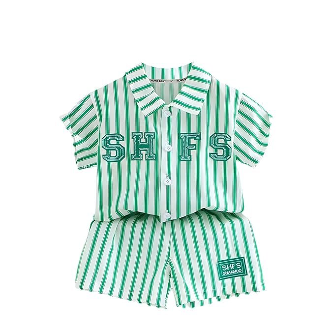 HONE BABY Co-ord Cotton Shirt and Pant Shorts Clothing Set for Boys – Stripes Design in Green Color