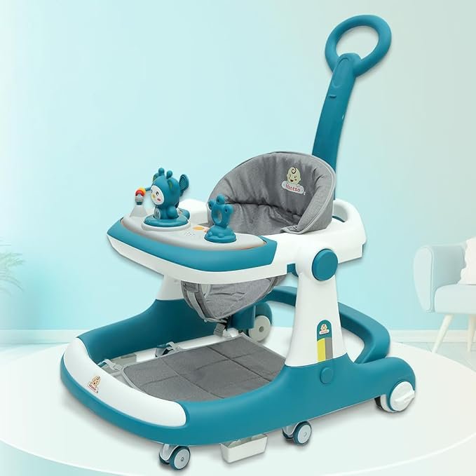 Infantso Teddy Steady Premium 4-in-1 Baby Walker, Bouncer, Feeding Tray, & Push Toy – Adjustable Height & Speed for Kids Boy and Girls 6-24 Months – 01Green
