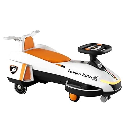 Kidsmate Lambo Rider 2-in-1 Electric & Manual Swing Car | Battery-Operated Ride-On for Kids 1-4 Years | LED Lights, Music & Smooth PU Wheels for Endless Fun – White