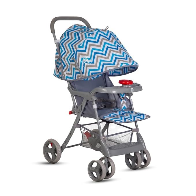 Mee Mee Baby Stroller and Pram for 0 to 3 Years | Extended Canopy with Detachable Feeding Tray | 5 Point Harness Belt | 360? Rotating Wheels with Shock Absorbent | Storage Basket for Baby/Kids (Blue)