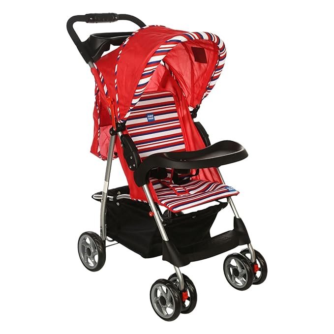 Mee Mee Baby Stroller/Pram for 0 to 3 Years, Quick One Hand Folding, Feeding Tray, Newborn/Kids, 5-Point Safety Harness, Swivel 360 Wheel with Breaks, Large Storage Basket, Reversible Handlebar (Red)