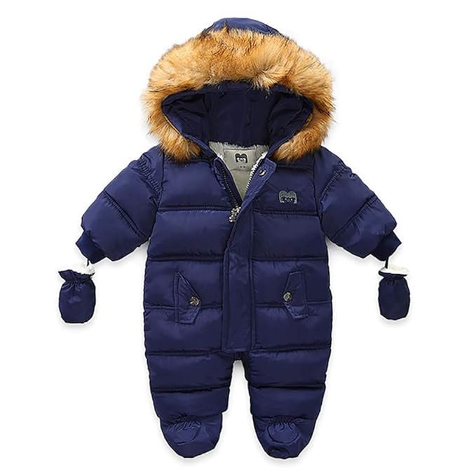 WALLARENEAR Infant Baby Boys Girls Winter Snowsuit Romper Hoodied Footie Outwear Toddler Jumpsuit Down Coat Jacket + Gloves